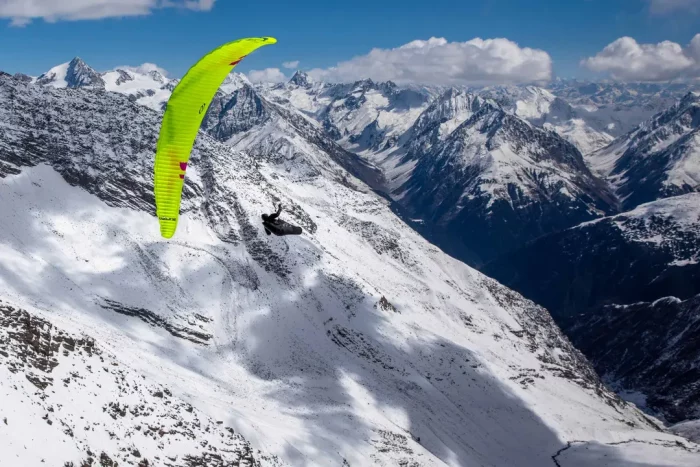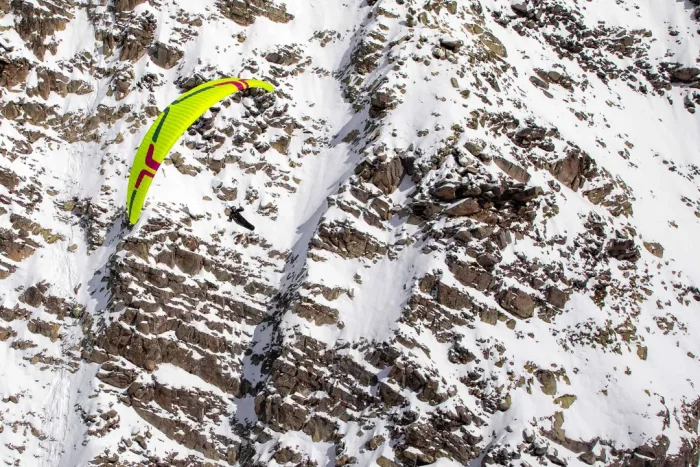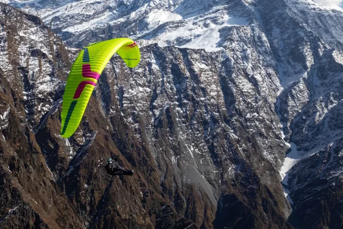 L’allongement est à peine augmenté mais toujours modéré pour cette catégorie d’aile et validé dans les conditions alpines fortes. L’optimisation de la structure interne a permis d’améliorer les performances en ajoutant sept cellules sans augmenter le poids total de l’aile.