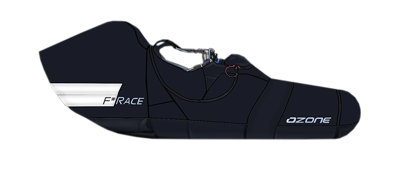 Le cocon, le cockpit et le conteneur de secours ventral intégré mais aussi le carénage postérieur assurent à la F*Race une ligne épurée et très aérodynamique. La structure de la sellette est confortable et facile à ajuster, avec deux réglages de support lombaire qui assurent un excellent soutien dorsal. La structure de l’assise en siège baquet est dérivée des maillages orientés en dyneema utilisés sur la F*Lite. Des renforts en nitinol améliorent le soutien et la rigidité au niveau du torse.
